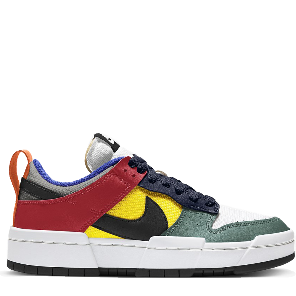 Die neue Dunk Disrupt Silhouette kommt gut bei Nike-Fans an und so released immer neue Colorways. In letzter Zeit veröffentlichte Nike schon öfter Schuhe in einem bunten Farbmix und der ‘Multicolor’ ist ein besonderes wildes Modell, in dem fünf Farben und die zwei Basistöne schwarz und weiß genutzt werden. Trotz der weißen Basis wirkt der Sneaker eher dunkel und trotz der vielen Farben neutral und gut kombinierbar.