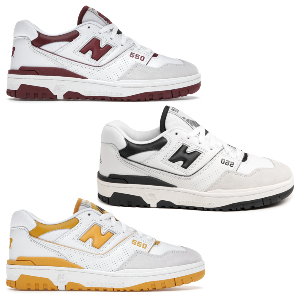 Mit dem 550 hat New Balance eine vintage Silhouette wiedereingeführt, die neuen Hype um die Marke bringt. Die Sneaker sind begehrt wie nur wenige andere Modelle von New Balance und so kommt es, dass am 16. direkt drei neue Colorways released werden. Alle mit einem Upper in Sea Salt farbenem Ton mit Akzenten an Outsole, Zunge, Fersenbereich und New Balance Symbol in den Farben weinrot, senfgelb und schwarz.