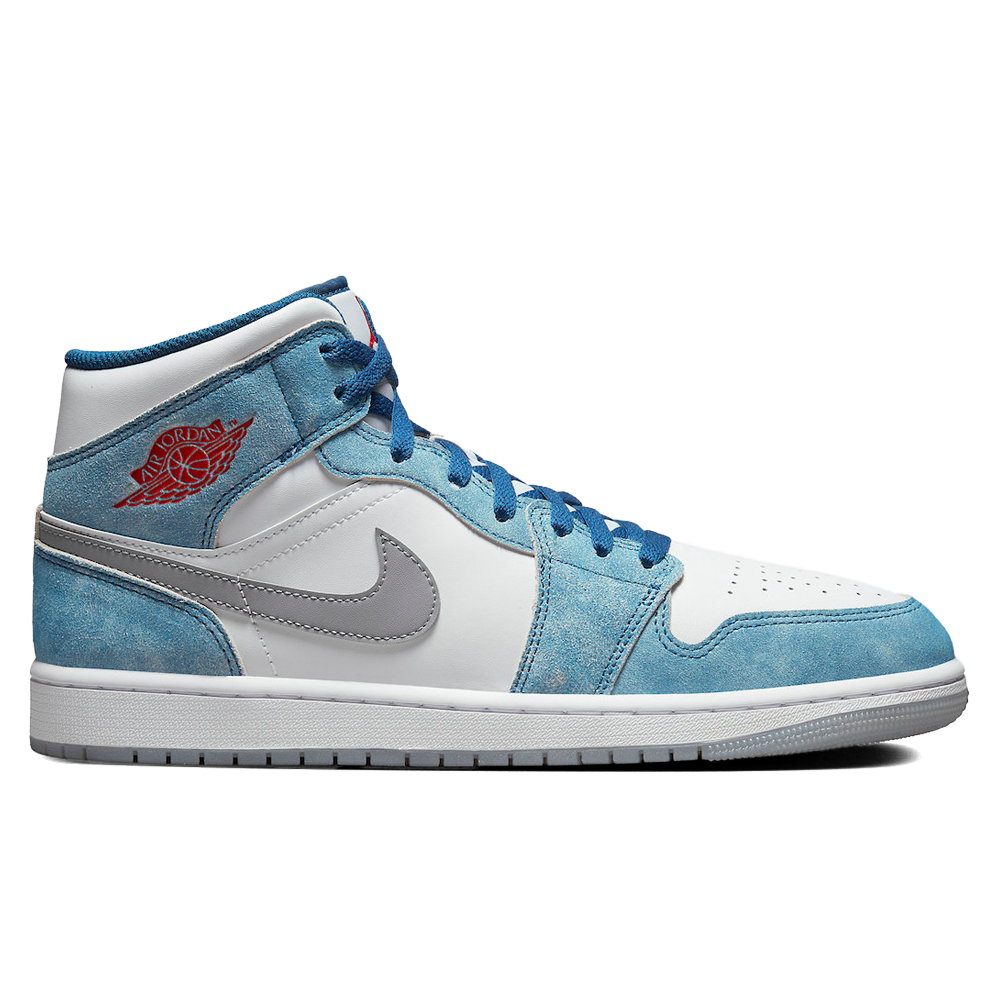 Der Air Jordan 1 Mid SE ‘French Blue’ zeigt ein verblasstes Design, das an den ‘Hyper Royal’ Jordan 1 High aus dem Jahr 2021 angelehnt ist.