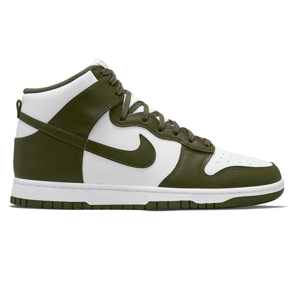 Einer der beliebtesten Farben 2021 war zweifelsohne Grün! Natürlich lässt uns Nike nicht in stich und releast passend den ‘Cargo Khaki’ noch diese Woche! Zuvor schon als GS-Version erschienen, hat sich diese Variante farblich kaum bis gar nicht verändert. Treu nach dem ‘Be True To Your School’ Schema kommt dieser Dunk in einem Zweifarbenspektakel aus einem satten Grün und reinem weiß. Weitere grüne Ansätze sind am Kragenbereich, sowie auf dem Schnürsenkeln zu finden.