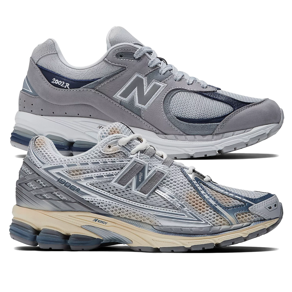 Bei diesem neuen Ensemble stehen die Schuhe im Mittelpunkt, die beide in neutralen grauen Farben gehalten sind. Das 1906R Team-up ist einzigartig in seinem Design, da es Flecken in der gesamten Basisschicht aufweist, um eine bereits getragene Ästhetik zu vermitteln, während die 2002Rs eher einen praktischen Weg einschlagen und mit einem saubereren grauen und marineblauen Farbblock ausgestattet sind.