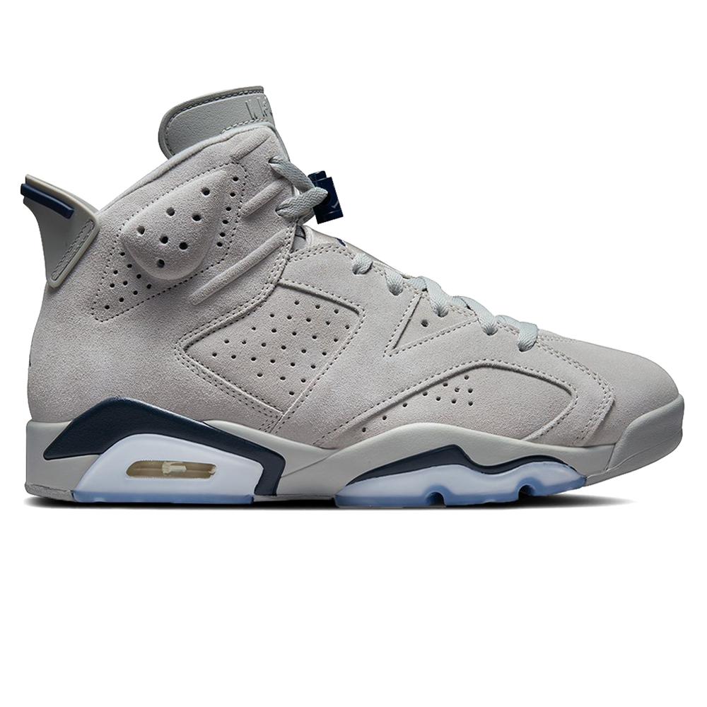 Der Air Jordan 6 Retro ‘Georgetown’ zeigt die charakteristischen Farben der Hoyas, des Teams, das 1982 im NCAA-Meisterschaftsspiel gegen Michael Jordans North Carolina Tar Heels verlor.