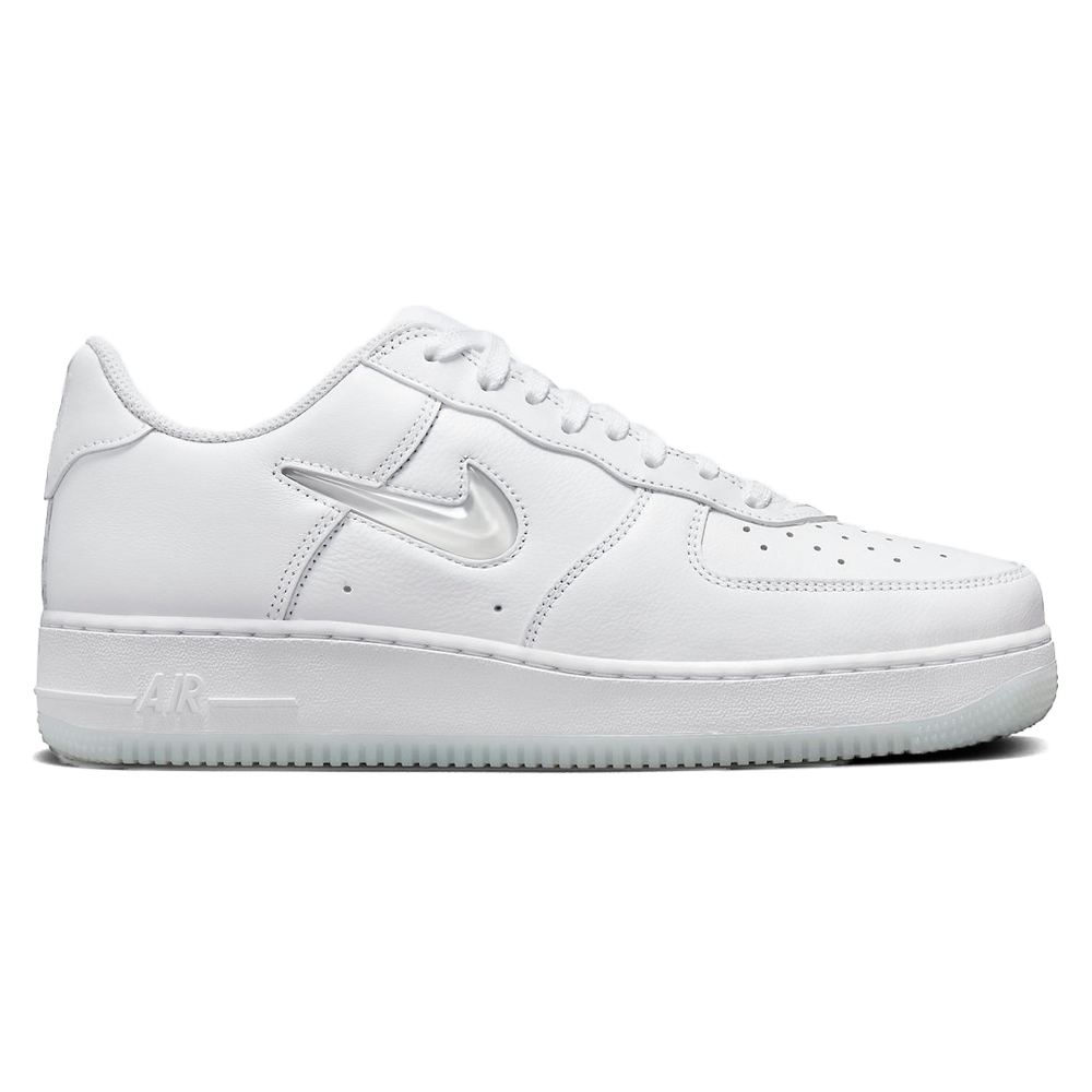 Der Schuh selbst besteht hauptsächlich aus weißem Leder, was ihn zu einem absoluten Must-Have macht. Doch damit nicht genug: Der Schuh hebt sich von den alltäglichen Modellen ab, indem er auf den ikonishen Juwel Swoosh anstelle des normalen setzt und eine subtile, eisblaue Außensohle zum Einsatz bringt.