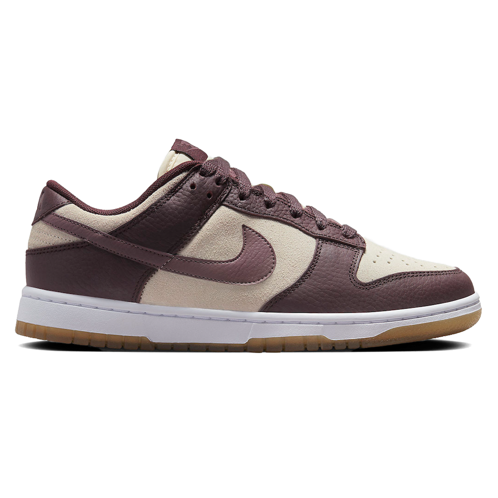 Die Basis des Schuhs ist in einem leichten Ton gehalten, der durch das Einfügen von Wildleder noch mehr Tiefe erhält. Gleichzeitig sorgen Lederpanels mit einer verführerischen, gedämpften Lila-Nuance an der Zehenkappe, Zunge und Ferse für den ultimativen Blickfang. Das Nike Dunk-Logo ist mit einem bezaubernden Plum Eclipse überzogen, das auch auf der Zwischen- und Außensohle zu finden ist.