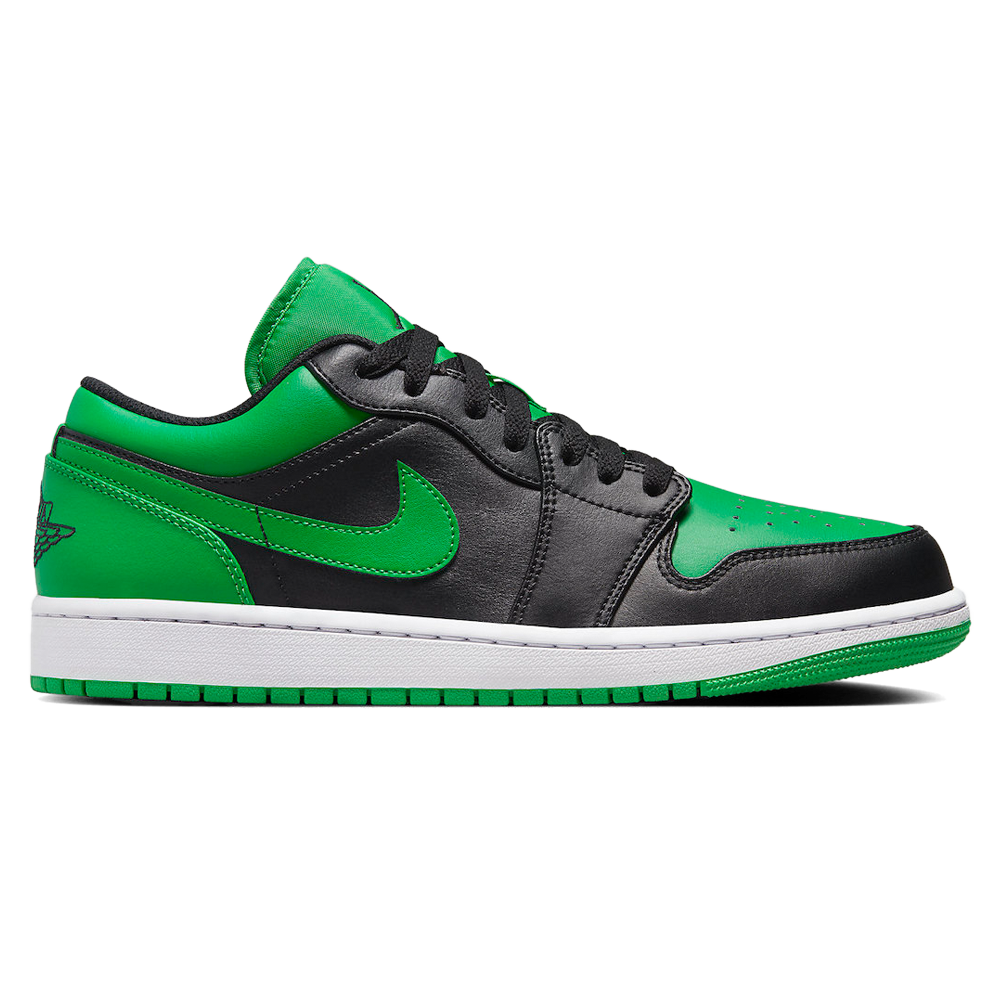 Air Jordan 1 Low ‘Black Lucky Green’ Release-Date: 18.04 Das elegante schwarze Obermaterial aus Leder wird durch lebendige grüne Akzente an der Zehenbox, dem Swoosh, dem Kragen und dem Fersen-Overlay gekonnt in Szene gesetzt. Die hochwertige Verarbeitung mit gesticktem Wings-Logo und dem ikonischen Jumpman-Icon auf der Zunge verleiht diesem Sneaker einen besonderen Charme. Die strapazierfähige Cupsole sorgt zudem für einen bequemen Tragekomfort und macht diesen Sneaker zu einem Must-Have für alle Sneaker-Enthusiasten.