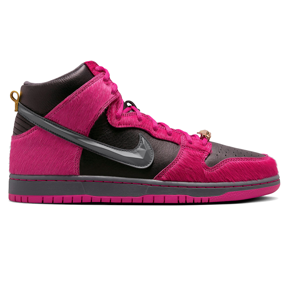 Nike SB Dunk High Run The Jewels ‘4/20’ Release-Date: 20.04 Das einzigartige Design des SB Dunk High Run The Jewels ‘4/20’ spiegelt die kraftvolle Musik und den kreativen Stil des Hip-Hop-Duos wider. Das schwarze Rauleder mit den auffälligen Pony-Haar-Überzügen in Fuchsia verleiht dem Sneaker eine beeindruckende Optik. Die skulpturierte und polierte Oberfläche des Swoosh und die goldenen Schnürsenkel-Dubrae verleihen dem Schuh einen Hauch von Luxus. Die versteckten Details wie der ‘Run The Jewels’-Print und die Tasche auf der Zunge sorgen für zusätzliche Überraschungen. Mit der Kombination aus schwarzen Seitenwänden und einer fuchsiafarbenen Laufsohle ist dieser High-Top-Sneaker definitiv ein Blickfang.