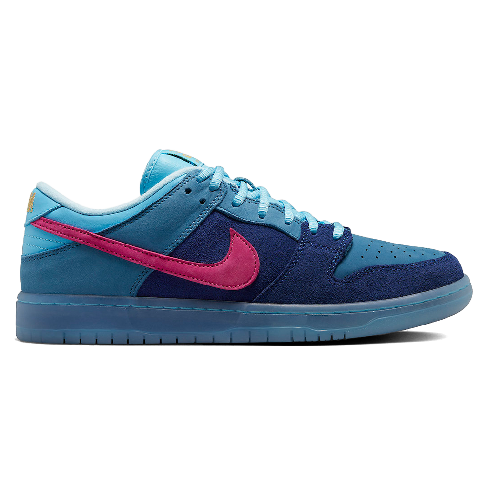 Nike SB Dunk Low Run The Jewels ‘4/20’ Release-Date: 20.04 Die Kollaboration mit dem bekannten Hip-Hop-Duo Killer Mike und El-P, bekannt als Run The Jewels, präsentiert sich mit einem einzigartigen Design in verschiedenen Blautönen und einem auffälligen Pink-Akzent. Die hochwertige Verarbeitung mit gesticktem Nike-Logo in Gold und dem gewebten Nike SB-Logo auf der Zunge macht diesen Sneaker zu einem echten Hingucker. Die halbtransparente Gummilaufsohle mit dem auffälligen ‘Run The Jewels’-Print unterstreicht den besonderen Charakter dieses Sneakers.