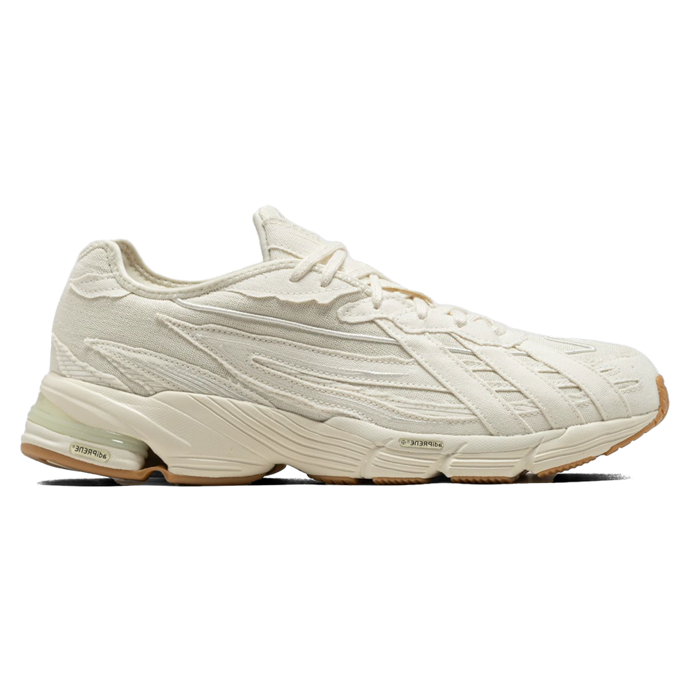 Adidas Orketro Sean Wotherspoon ‘Off White’ Release-Date: 01.07 Nachdem die Orketro in einer pinklastigen Mehrfarben-Ausführung debütierte, kehrt der Adidas Orketro Sean Wotherspoon nun in einem leichten, minimalistischen ‘Off White’ Finish zurück. Die kommenden Orketros übernehmen die gleichen Paneelformen wie die ersten Modelle und zeichnen sich durch schwere Canvas-Obermaterialien mit abgenutzten Flammen-Details aus, die von den Zehen schräg nach hinten zu den Fersen verlaufen. Das Dreistreifen-Logo verläuft über die Vorderseite des Schuhs, während die Initialen ‘SW’ in Grün auf dem Zehenbereich gestickt sind. Das Peace-Logo von Wotherspoon ist an den Zungenetiketten und Kork-Einlegesohlen zu erkennen, und das Design wird durch adiPRENE+-gedämpfte Zwischensohlen und Gummilaufsohlen abgerundet.