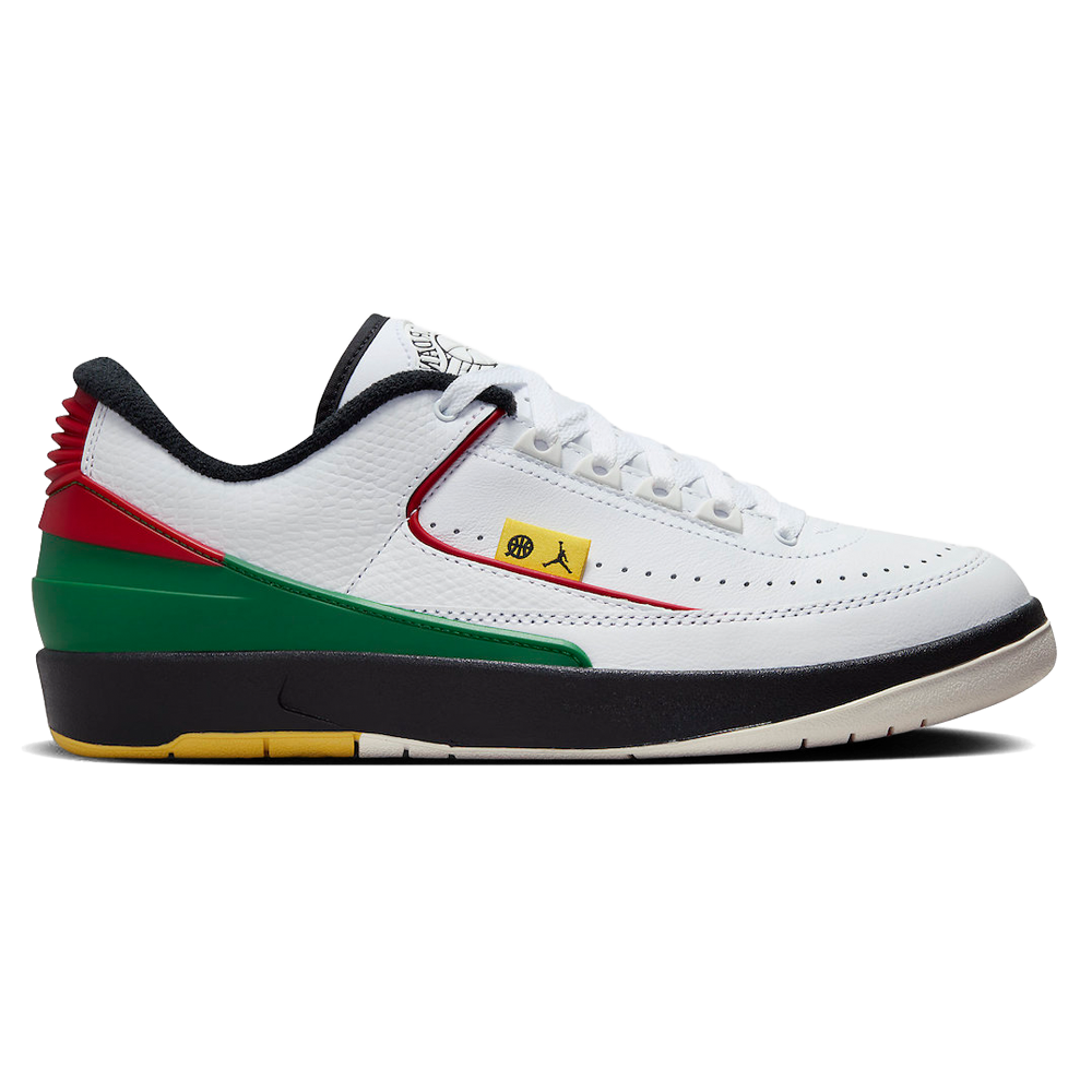 Air Jordan 2 Retro Low ‘Quai 54’ Release-Date: 30.06 Die Jordan Brand zelebriert jedes Jahr im Sommer das Quai54 Streetball-Turnier in Paris mit einer eigenen Tradition. In diesem Jahr feiert das von Hammadoun Sidibé und Thibaut de Longeville gegründete Event sein 20-jähriges Jubiläum, und die Marke möchte diesen Anlass mit einer besonderen Schuhkollektion würdigen. Ein Mitglied dieser exklusiven Veröffentlichung ist der Air Jordan 2 Retro Low ‘Quai 54’, der nun offiziell in die Startlöcher geht. Ähnlich wie sein Pendant, der Air Jordan 1 Low, ist dieser Schuh mit Panafrikanisch-inspirierten Akzenten ausgestattet. Die meiste Fläche des Obermaterials besteht aus hochwertigem weißem Leder und wird durch kräftige rote Paspeln und einen zweifarbigen Fersenbereich ergänzt. Ein gelbes Tab befindet sich in der Mitte des Viertelpanels, das mit gelben Hintergründen sowie Jumpman- und Quai-54-Logos gestaltet ist. Darüber hinaus zieren geometrische Muster die Einlegesohlen, und die Schuhe werden mit Anhängern geliefert, auf denen ’20 Jahre im Spiel’ zu lesen ist.