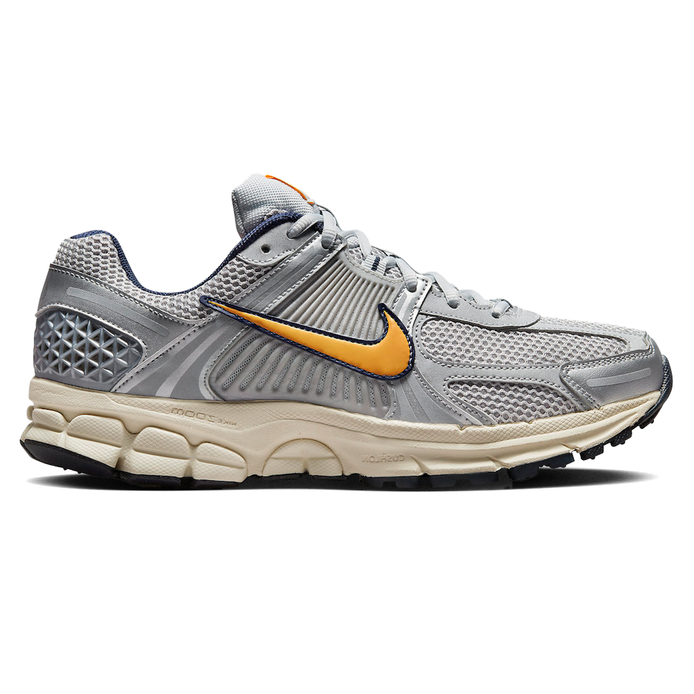 Nike Air Zoom Vomero 5 ‘Platinum Laser Orange’ Release-Date: 01.07 Der Nike Zoom Vomero 5 erlebt in dieser Saison einen regelrechten Hype und setzt neue Maßstäbe in Sachen Beliebtheit. Nachdem das Modell 2018 durch Zusammenarbeit mit Streetwear-Marken und vielseitige Farbvarianten Aufmerksamkeit erregte, hat Nike schnell reagiert und eine Vielzahl neuer Farbwege auf den Markt gebracht. Diese kommende Farbvariante verwendet hauptsächlich das Pure Platinum als Grundfarbe auf dem Obermaterial. Es bedeckt das darunterliegende Mesh-Material, die gerippten Käfige an den Seiten, die Fersenformen und die Überzüge an den Zehenkappen und Fersen. Akzente in Laser Orange setzen sich entlang der Swooshes und der Zungen-Branding ab, während dezente marineblaue Details die Nike-Logos umrahmen und die Innenfutter ausfüllen. Die mit Zoom-Dämpfung ausgestatteten Zwischensohlen sind in cremigen Farben gehalten, was den Sneakern eine nostalgische Ästhetik verleiht.