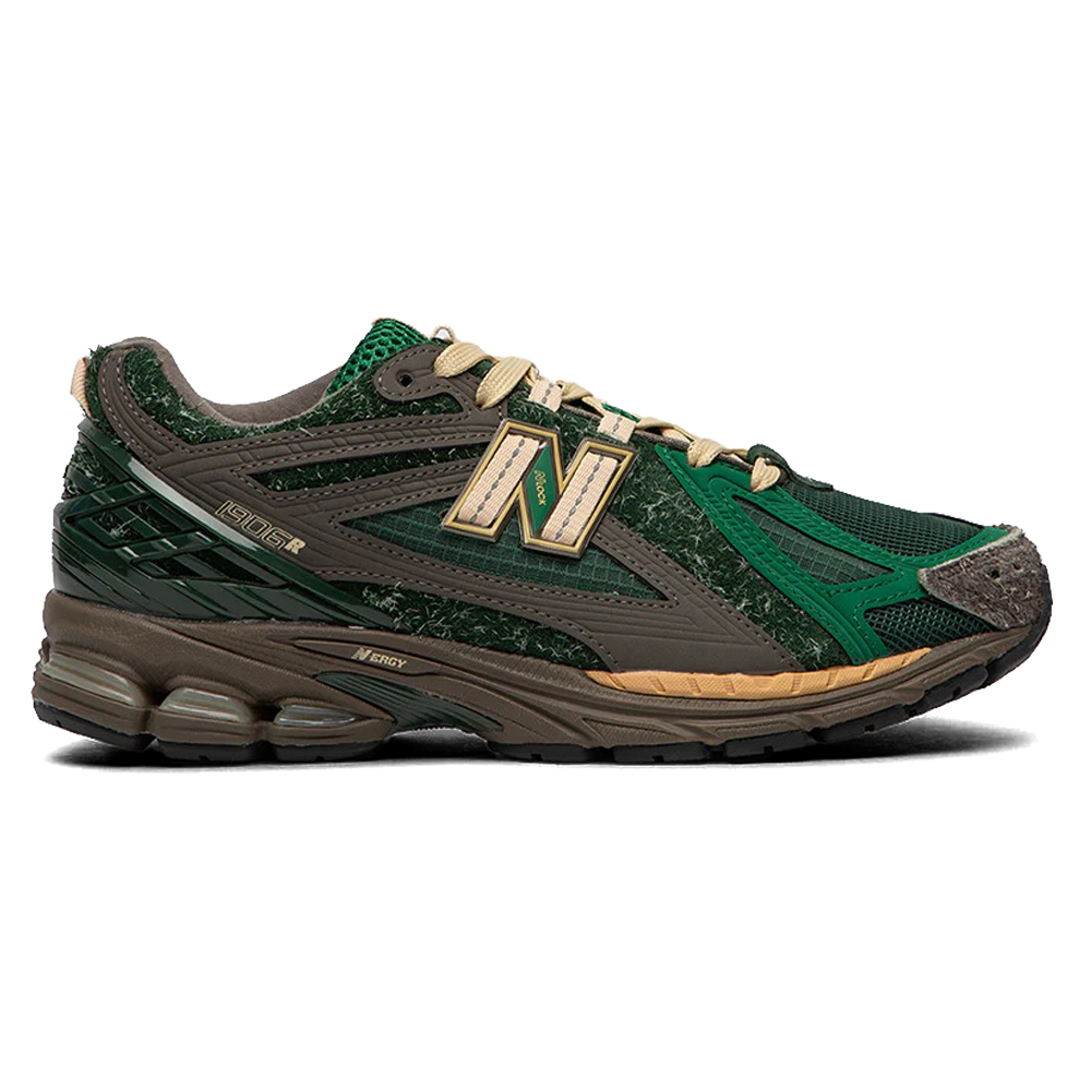 Das Upper des 1906R präsentiert sich in einer bewährten Kombination aus atmungsaktivem Mesh und grünen Kunstleder-Overlays. Aber hier hört der Spaß nicht auf! Dieser Runner bringt einige technische Highlights mit sich, darunter das charakteristische NLock-System und der markante Heel Counter, die für eine ausgezeichnete Passform und Stabilität sorgen.