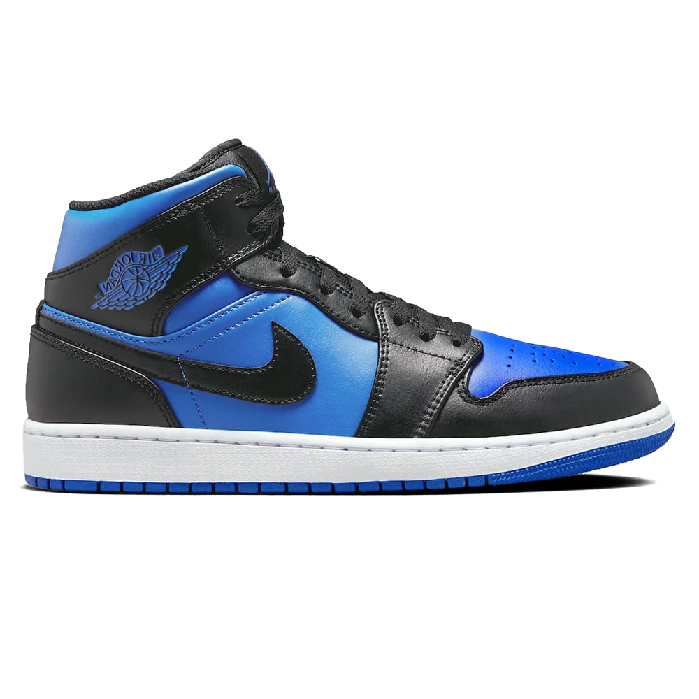 Air Jordan 1 Mid ‘Black Royal Blue’ Release-Date: 07.11 Im Laufe der Jahrzehnte hat die Jordan Brand mehrere der beliebtesten Farbgebungen des Air Jordan 1 zurückgebracht, angefangen bei ‘Chicago’ bis hin zu ‘Neutral Grey’. Das ‘Metallic Pack’ hingegen hat außerhalb weniger Retros aus den Jahren 2016 und 2017 sowie einem geistigen Nachfolger in ‘Court Purple’ von 2021 nicht viel Liebe erfahren. Ob und wann sie jemals zu dieser Kollektion zurückkehren werden, ist noch unklar. Derzeit verwendet Jumpman jedoch ähnliche Materialien für Veröffentlichungen wie diesen Air Jordan 1 Mid. Abgesehen von den Materialien ähnelt der ‘Black Royal Blue’ eher dem OG ‘Royal Blue’, da er ähnliche Töne verwendet, jedoch in völlig anderem Farbschema. Royal Blue wird auf der Basis, d.h. auf der Toebox, dem Mittelteil und dem Kragen, großzügig aufgetragen und erhält weitgehend einen metallischen Glanz. Das auf die Seite gestempelte Wings-Logo folgt diesem Muster und kontrastiert mit dem flacheren Erscheinungsbild der schwarzen Überzüge und der Schnürsenkel sowie der weißen/blauen Zwischensohle.