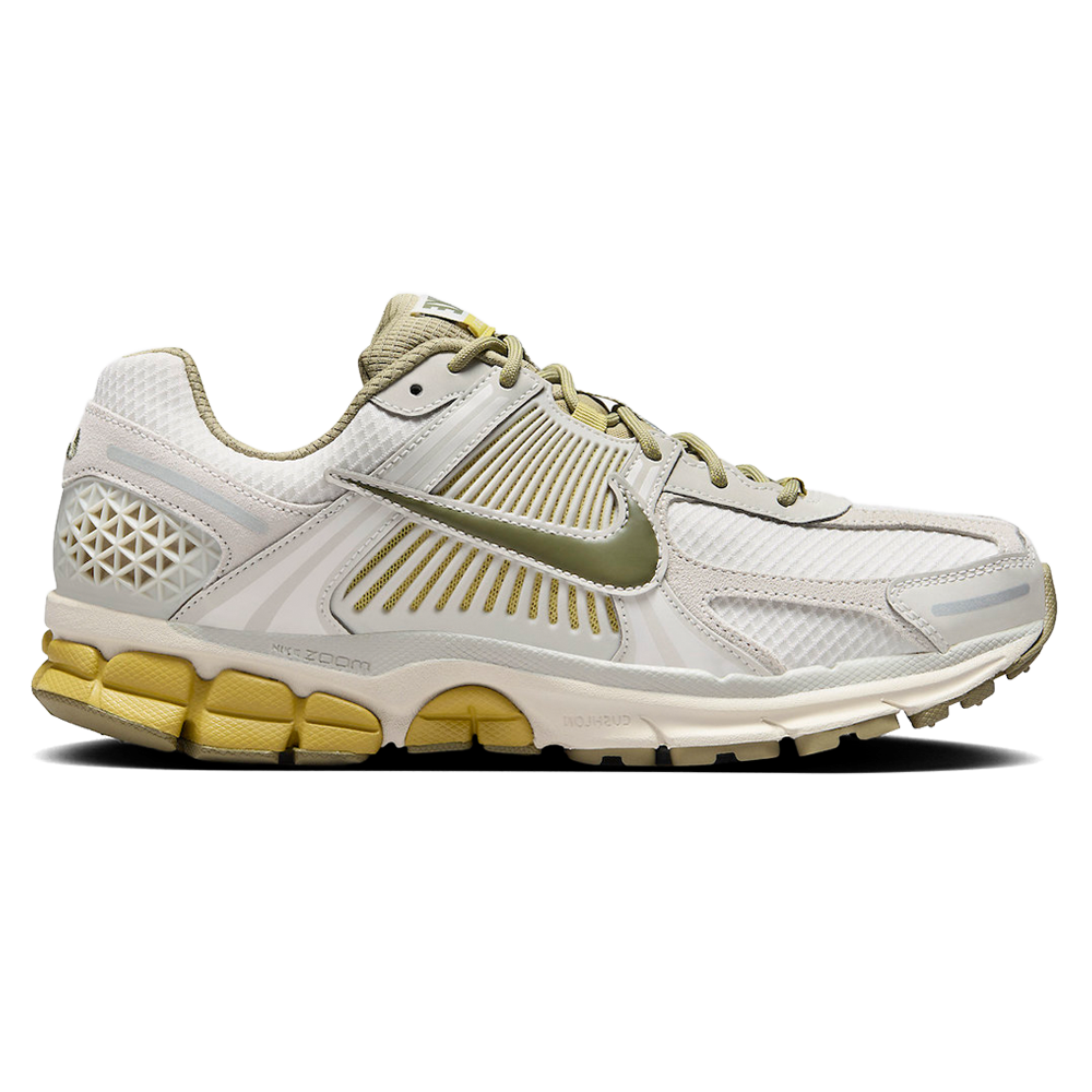 Nike Air Zoom Vomero 5 ‘Light Bone Olive’ Release-Date: 09.11 Nach einem aufregenden Sommer, der die Dad-Sneaker von Nike wieder in den Fokus gerückt hat, ist der Zoom Vomero 5 nun bereit für eine lange Serie von Veröffentlichungen in den Herbst- und Wintermonaten. Passend zur Energie der klaren Wildnis präsentiert sich das Modell in einer Mischung aus Khaki-Tönen. Vom Mesh-Grundmaterial bis zu den Wildleder- und TPU-Überzügen erstrahlt der Großteil des Obermaterials in exklusivem ‘Light Bone Olive’, was die Bühne für auffällige Akzente bereitet. Die Zungenkonstruktion, Schnürsenkel, das Innenfutter und die Innensohlen bringen dabei die erste Portion Medium Olive ein und färben gleichzeitig die seitlichen Swooshes und die Sohle in dieser Farbe. Darüber hinaus erhalten das Viertelpanel und die zweite Hälfte der Mittelsohle einen lebhafteren Abschluss und fügen dem cremefarbenen Ensemble einen anhaltenden Hauch von Neutral Olive hinzu.