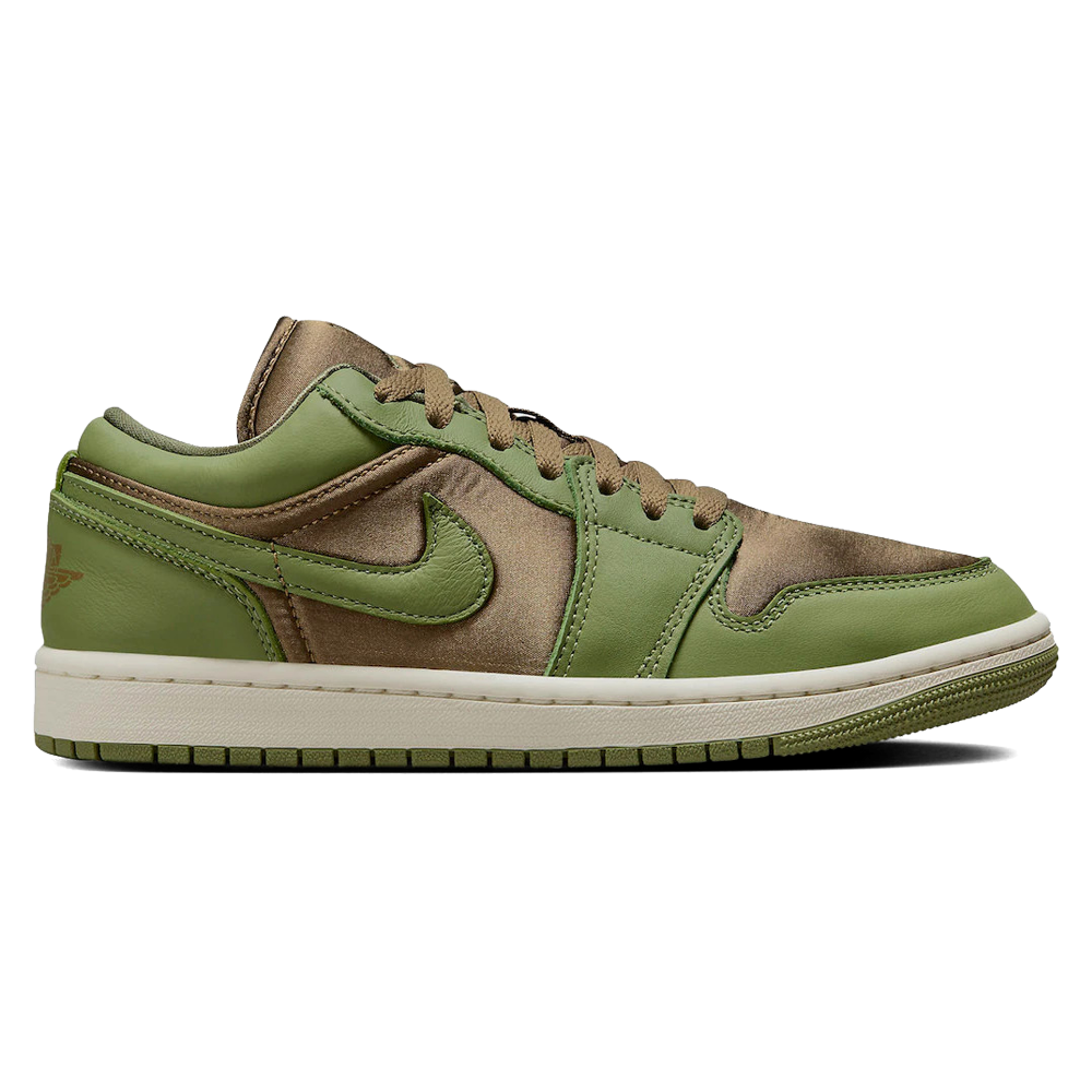 Air Jordan 1 Low SE ‘Olive Brown Kelp’ (W) Release-Date: 05.12 Der Air Jordan 1 Low hat dank der konstanten Verwendung durch Jordan Brand auch im Jahr 2023 einen weiteren erfolgreichen Lauf erlebt. Diese Ausführung des Air Jordan 1 Low zeigt die charakteristische braune Farbe, die die Satin-Basis des Sneakers schmückt. Von dort aus gesellt sich Sky J Light Olive dazu, um einen weiteren Erdton hinzuzufügen, der die Lederelemente umfasst, einschließlich Mudguard, Ösen, Kragen, Fersenkappe und Swooshes. Zusätzliche Farbakzente kommen von den Schnürsenkeln, der Zunge und dem Wings-Logo an der Ferse, die alle in Brown Kelp gehalten sind. Zum Abschluss beginnt die Sohleneinheit mit einer genähten Sail-Zwischensohle und wird von einer olivgrünen Gummilaufsohle abgerundet.