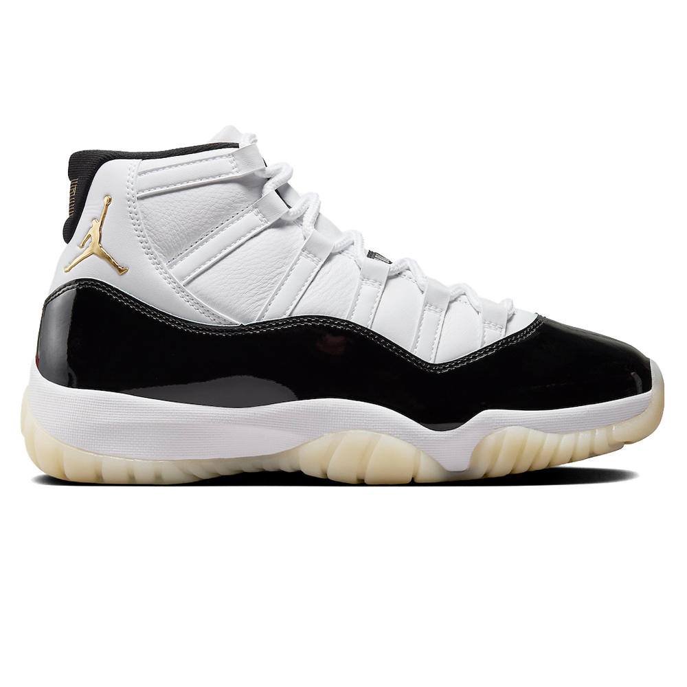 Air Jordan 11 Retro ‘Gratitude : Defining Moments’ Release-Date: 09.12 Die 2023er Ausgabe des Air Jordan 11 Retro ‘Gratitude / Defining Moments’, auch bekannt als ‘DMP’, bringt eine begehrte Farbgebung des legendären Modells zurück, das ursprünglich als Teil des ‘Defining Moments Packs’ von 2006 mit einem Air Jordan 6 veröffentlicht wurde. Inspiriert vom OG ‘Concord’-Colorway, verfügt das Meisterschafts-Silhouette über ein weißes genarbtes Lederobermaterial mit tonalen Ösen und einem schwarzen Lackleder-Mudguard. Metallisch goldene Akzente finden sich auf den Branding-Elementen des Schuhs, darunter ein geprägtes Jumpman-Logo am seitlichen Knöchel und eine ’23’ auf dem Fersenlasche. Der Sneaker ruht auf einer Mittelsohle, unterstützt von einer Kohlefaser-Schaftplatte und einer transluzenten Gummilaufsohle.