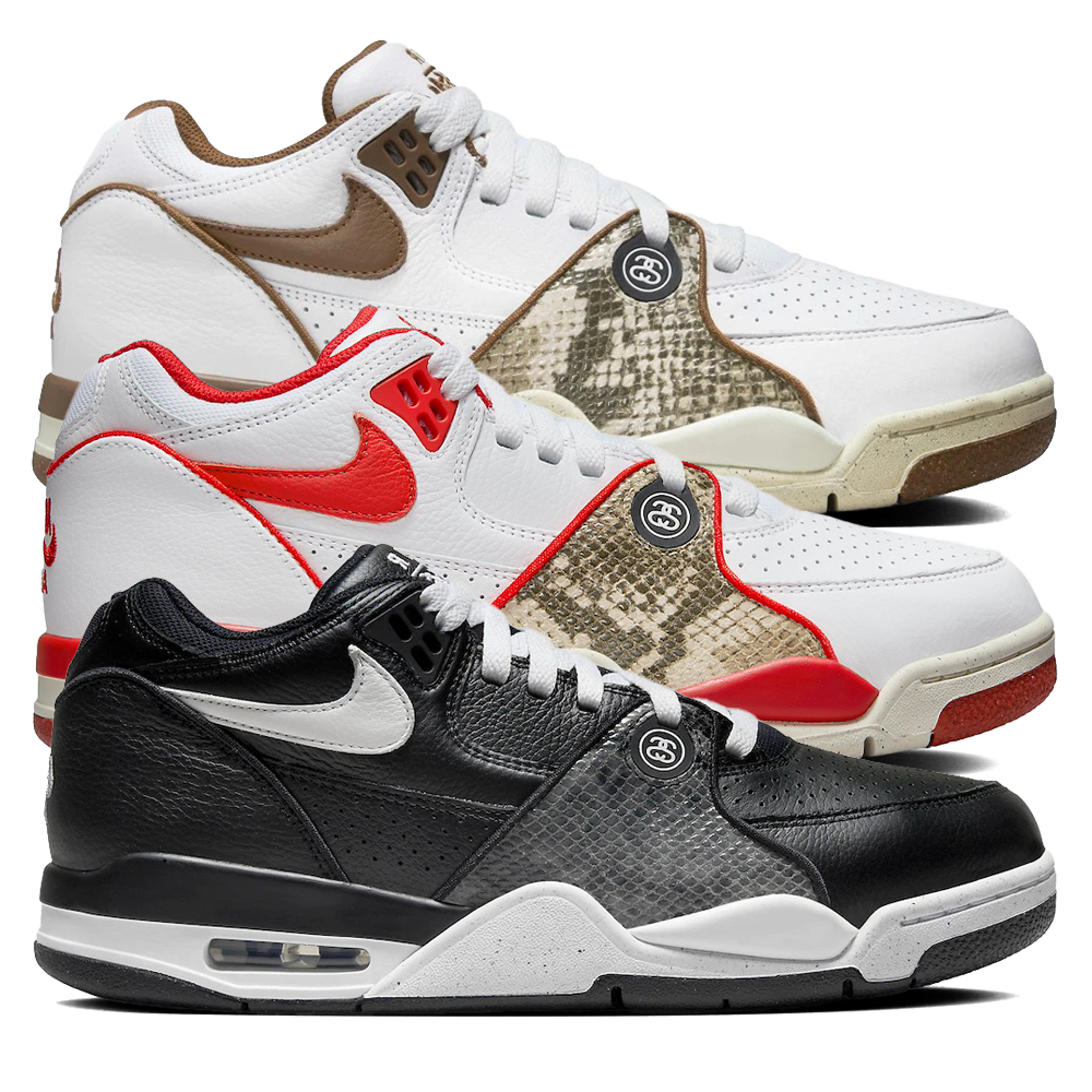 Nike Air Flight 89 Low SP Stüssy Release-Date: 08.12 Die neueste Fortsetzung der 20-jährigen Partnerschaft des Duos dient zur Feier des 35. Jubiläums des Nike Air Flight 89, das stark vom Air Jordan 4 inspiriert ist. Der Nike Air Flight 89 Low SP Stüssy wird voraussichtlich in den Farben ‘Habanero’, ‘Black’ und ‘Pecan’ mit Akzenten aus künstlichem Schlangenleder erhältlich sein. Die Schuhe verfügen über Lederobermaterial mit Perforationen und Schlangenlederüberzügen an den Seiten. Weitere Details sind Mesh-Kragen, ‘SS’ Stüssy-Motive, Swooshes an den Mittelfüßen, co-gebrandete Zungen, NIKE AIR gestickt hinten und bedruckte Einlegesohlen.