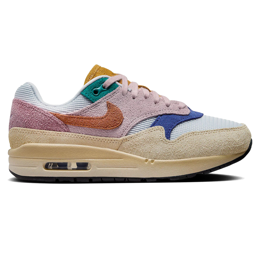 Nike Air Max 1 ‘Tan Lines’ (W) Release-Date: 05.12 Tinker Hatfields klassisches Nike Air Max 1 Silhouette kehrt diesen Sommer auf eindrucksvolle Weise zurück, während Nike weiterhin kreative neue Farbkombinationen entwickelt. Das neueste Modell ist ein ‘Tan Lines’ Farbschema, das weißes Mesh mit mehrfarbigen Wildlederüberzügen kombiniert. Brauntöne werden für die umlaufende Schmutzfänger verwendet, um zu den vorgealterten Zwischensohlen zu passen, während hellere Nuancen von Pink, Blau, Orangerot und Grün den Rest des Schuhs schmücken. Stilisierte Nike-Logos sind auf dem Zungenlabel und der Fersenkappe geprägt, und das Design wird durch sichtbare Nike Air-Fenster und schwarze Gummilaufsohlen abgerundet.
