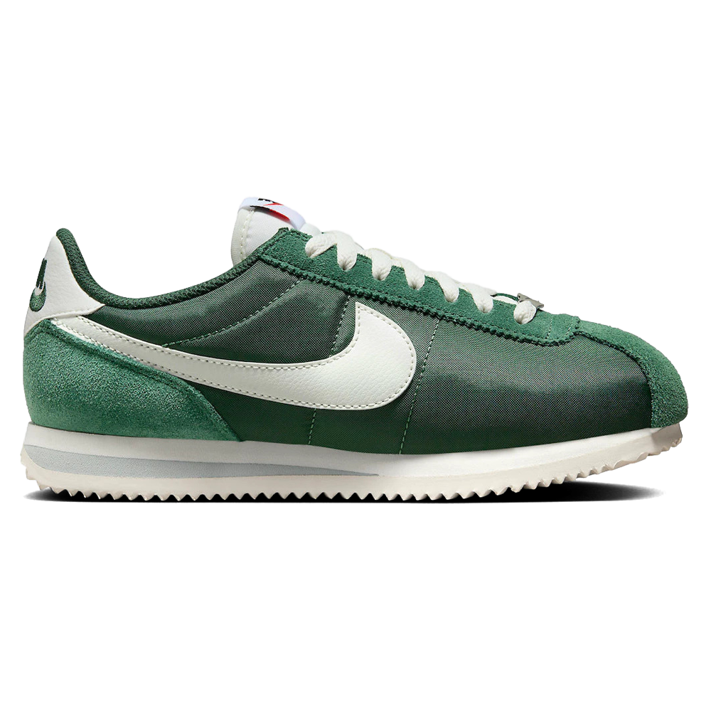 Release-Date: 05.12 Nike setzt weiterhin auf sein Cortez-Modell als Leinwand für Experimente. In letzter Zeit wurde der Sneaker in zahlreichen kollaborativen Interpretationen präsentiert – insbesondere mit Highlights wie Sacai und UNION. Nun kehrt der Swoosh zu den Grundlagen zurück mit einer neuen Allgemeinveröffentlichung in einem völlig neuen Farbschema namens ‘Fir’. Der Sneaker ist mit Details in Sail und Light Silver verziert, während die ‘Fir’-Basis aus einem Nylon-Obermaterial und Wildleder-Überzügen besteht. Der übliche Swoosh wurde mit weißem Leder versehen, wobei dasselbe Detail auch auf den passenden Fersenlaschen, Zungen und der Branding der Einlegesohle zu finden ist. Bestickte Nike-Logos sitzen auf einer weißen Zwischensohle, dem Light Silver-Streifen und der Sail-Gummilaufsohle, um das Design abzurunden.