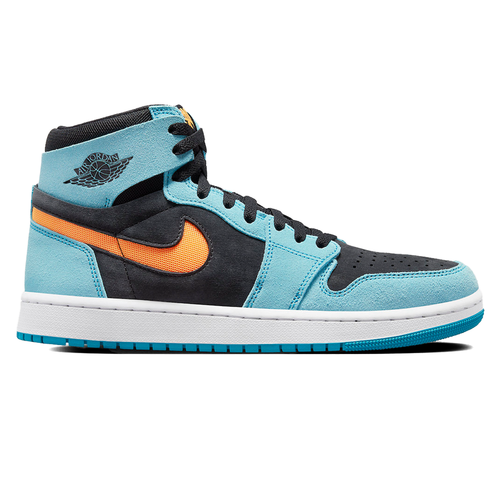 Air Jordan 1 High Zoom CMFT 2 ‘Bleached Aqua Citrus’ Release-Date: 02.05 Der Air Jordan 1 High Zoom CMFT 2 hat seit seinem Debüt vor drei Jahren nichts an Schwung verloren und wurde gerade für 2023 aktualisiert. Neben einer ‘Valentine’s Day’ Farbgebung wird die Silhouette bald in einem sauberen Orange- und Blau-Arrangement erhältlich sein. Über seinen Wildlederüberzügen lehnt sich dieses Paar stark an den beliebten Farbton University Blue. Dieser kühle Ton wird durch ein ebenso lebhaftes Orange ergänzt, das den eingelassenen Swoosh sowie das ZOOM AIR auf der Zunge hervorhebt. Darunter ist die strukturierte Lederbasis komplett geschwärzt und passt zu vielen der benachbarten Elemente – Netz-Kragen, Schnürsenkel, Zunge und Wings-Logo – außer der Zwischensohle, die sich für weiße Seitenwände und einen dunkleren blauen Boden entscheidet, als das, was darüber ist.
