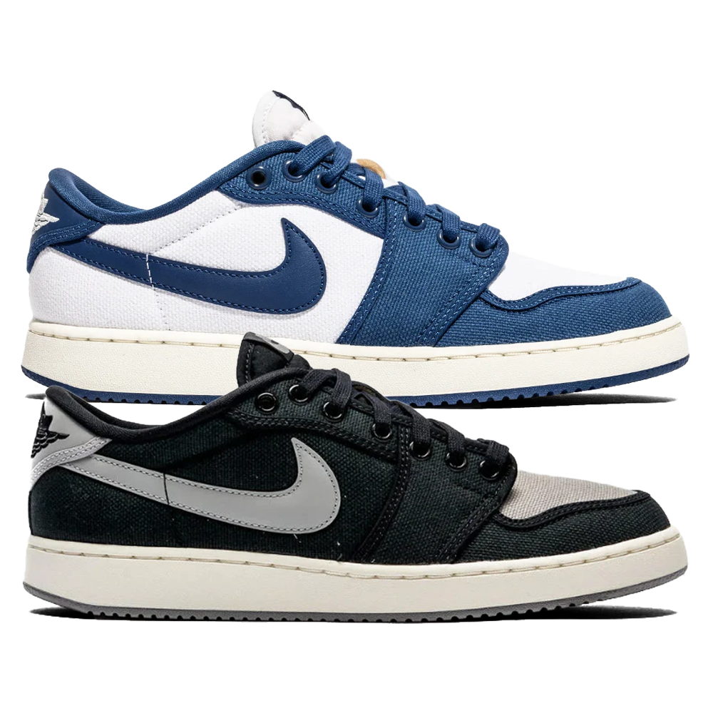Air Jordan 1 KO Low ‘Kentucky’ & ‘Shadow’ Release-Date: 01.05 Es ist unglaublich, dass seit 38 Jahren der Air Jordan 1 und seine Version aus Canvas, der KO, in den Regalen zu finden sind. Nachdem wir vor ein paar Jahren bereits die Geschichte des KO durchleuchtet haben, wird in diesem Jahr ein neues Kapitel eingeführt – der Air Jordan 1 KO Low. Die ersten Farbvarianten, die nach der Zusammenarbeit auf den Markt kommen, sind ‘Shadow’ und ‘Kentucky’. Die erste Farbvariante präsentiert ihr Canvas-Obermaterial in hauptsächlich schwarz, wobei Medium Grey bei den Swooshes, Fersentab, Schnürsenkel, Markenlogo der Zunge, Zehenbereich und Laufsohle eingesetzt wird. Die ‘Kentucky’-Variante hingegen hat eine weiße Leinwandbasis, die von einem Blau begleitet wird, das an die University of Kentucky erinnert. Dieses Blau findet sich bei den Überzügen, Swooshes, Fersentab und der Laufsohle wieder.