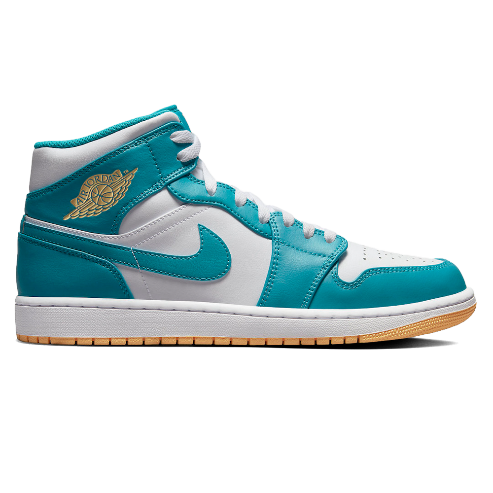 Release-Date: 02.05 Die Air Jordan 1 Mid wird zwar nicht den Hype um ihre High-Top-Konstruktion umstoßen, dennoch treibt sie weiterhin das Angebot von Jordan Brand voran. Das beweist die neueste, exklusiv für Frauen erhältliche Variante, die eine frühlingshafte Ästhetik in das neueste Modell einbringt. Das glatte Leder des Schuhs ist in typischer Zwei-Ton-Farbkombination gehalten, wobei Aqua-blaue Overlays perfekt mit einer knisternden weißen Grundschicht harmonieren. Der strahlend blaue Farbton zieht sich auch entlang des Sockliners, der Zungenlaschen und des seitlichen Swooshes und wird durch zarte Nuancen von Peach ergänzt, die sich sowohl auf den Innensohlen als auch auf dem Profil des Schuhs gekonnt in Szene setzen.