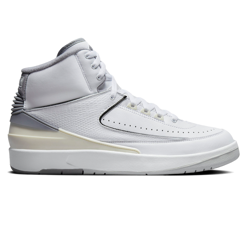 Air Jordan 2 Retro ‘White Cement’ Release-Date: 06.05 Der Air Jordan 2 Retro ‘White Cement’ verpasst Michael Jordans zweitem Signature-Schuh ein einfaches, aber elegantes Makeover. Das weiße Leder-Obermaterial ist mit einer tonalen, schuppigen Textur überzogen, die von schwarzen und grauen Paspeln umrahmt wird. Eine graue, geformte Ferse mit geprägtem Nike-Logo vervollständigt das Design. Der Schuh ist außerdem mit einem grauen Wings-Logo auf der Zunge und einer Polyurethan-Zwischensohle ausgestattet, die mit eingekapseltem Air-Sole-Dämpfungssystem für eine geschmeidige Fahrt sorgt. Innen zeigt der Schuh eine Skyline-Grafik auf der Einlegesohle sowie den Schriftzug ‘Look, Up in the Air’.