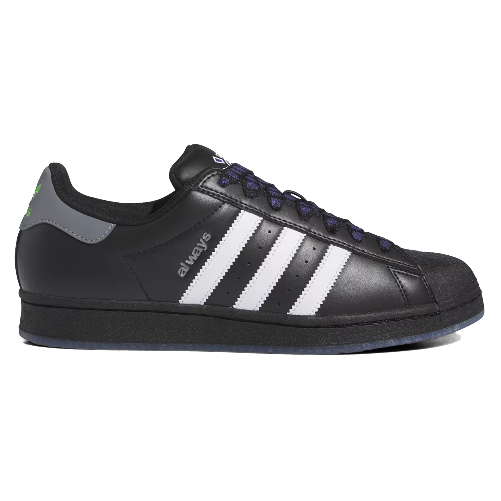 Adidas Superstar ADV Always Do What You Should Do ‘New Zealand’ Release-Date: 24.02 Nach der ersten Ankündigung ihrer Zusammenarbeit haben das in London ansässige Skateboard-Label Always Do What You Should Do und Adidas offiziell die offiziellen Bilder ihrer gemeinsamen, retro-inspirierten Superstar-Silhouette enthüllt – das erste Stück, das in der gemeinsam gestalteten Kapselkollektion erscheinen wird. Always Do What You Should Do setzt sich für Skateboarding, Surfen und ‘deinen Freunden zu sagen, dass du sie liebst’ ein, und die Marke huldigt der Superstar-Silhouette mit den Hauptelementen, die auf der Innensohle, der Zunge und der Laufsohle hervorgehoben sind. Das Obermaterial des Sneakers besteht aus nachhaltigem Kunstleder und verfügt über eine auffällige dicke Zunge mit dem gewohnten @sun-Logo von Always. Ein hochsichtbarer reflektierender Fersenaufnäher mit austauschbaren Schnürsenkeln spielt weiterhin auf das Markenethos von ADWYSD an, und eine Karte von Neuseeland prangt stolz auf der Gummisohle. Die Verbindung von Always zur Surfkultur und ihre Reise von den Stränden Neuseelands zu den Straßen Londons wird auf der Innensohle durch einen sandigen Fußabdruck und die Worte ‘London’ und ‘Mount Maunganui’ verdeutlicht, was die Wurzeln der Marke und die Verbindung zu beiden Ländern unterstreicht. Zusätzlich haben Adidas und Always Do What You Should Do einen Gemeinschaftsraum in Hackney, London, ins Leben gerufen, der die Vielfalt ihrer Gemeinschaften feiert und die Welten des Skateboardings und Surfens zusammenbringt.