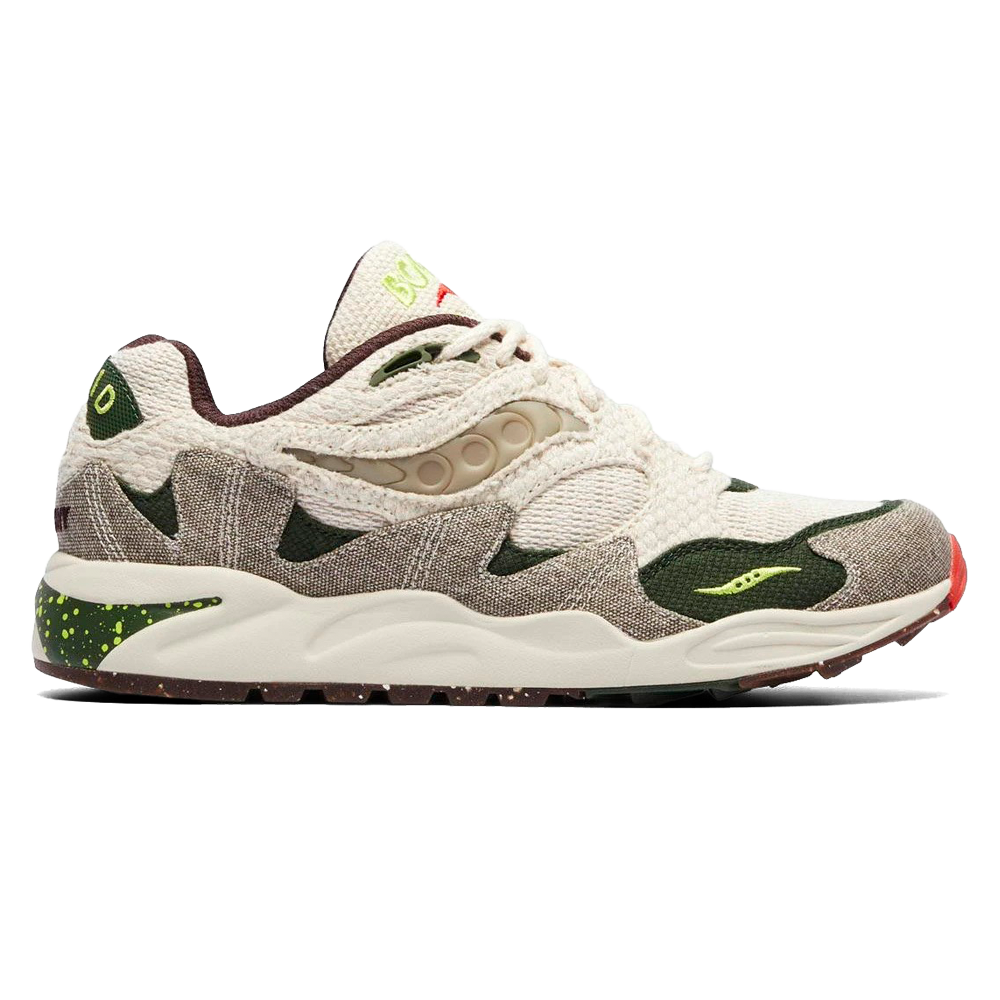 Saucony Grid Shadow 2 Bodega ‘Jaunt Woven’ Release-Date: 23.02 Vom 3D Grid Hurricane über den GRID Azura 2000 bis hin zum Grid Shadow 2 haben Bodega und Saucony eine langjährige Geschichte von Schuh-Kollaborationen. Nun sind die beiden Marken zurück mit einer weiteren Version des Grid 2 Shadow Reissue. Dieses Mal erscheint der Schuh in ‘Jaunt Woven’. Wie der Name schon sagt, präsentiert sich das Modell mit einem mehrstufigen Design, das sich durch bedeutende gewebte Teile auszeichnet. Was den Schuh besonders macht, ist das Obermaterial, das aus stone-wash 180z-Canvas, Hanf- und Baumwollstoffen besteht – alle in natürlichen Farbtönen. Die Verwendung verschiedener natürlicher Fasern verleiht dem Design eine umweltfreundliche Note. Der Schuh verfügt außerdem über eine geformte EVA-Zwischensohle in Creme mit einem gesprenkelten grünen Absatz und einer tiefbraunen Gummilaufsohle. Ergänzt wird der Schuh durch Akzente in Acid Lime und Red Alert.