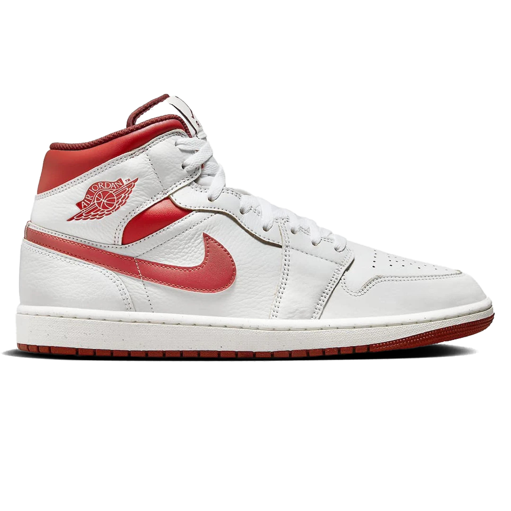 Gekleidet in Weiß, Lobster, Dune Red, Sail und Vachetta Tan, präsentiert sich dieser Air Jordan 1 Mid. Er ist aus hochwertigem Leder gefertigt, verfügt über Mesh-Zungen und ein Innenfutter mit Perforationen im Zehenbereich für Atmungsaktivität. Das Modell hat eine weiße Grundfarbe mit roten Akzenten auf den Zungen, dem Kragen, dem Innenfutter, den Wings- und Swoosh-Logos.